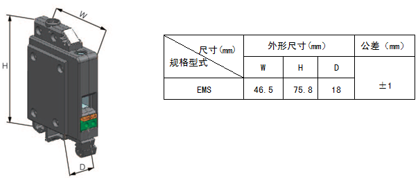 EMS 50A/10mA 10     3kV ≤7.8V -20℃~70℃ 導軌