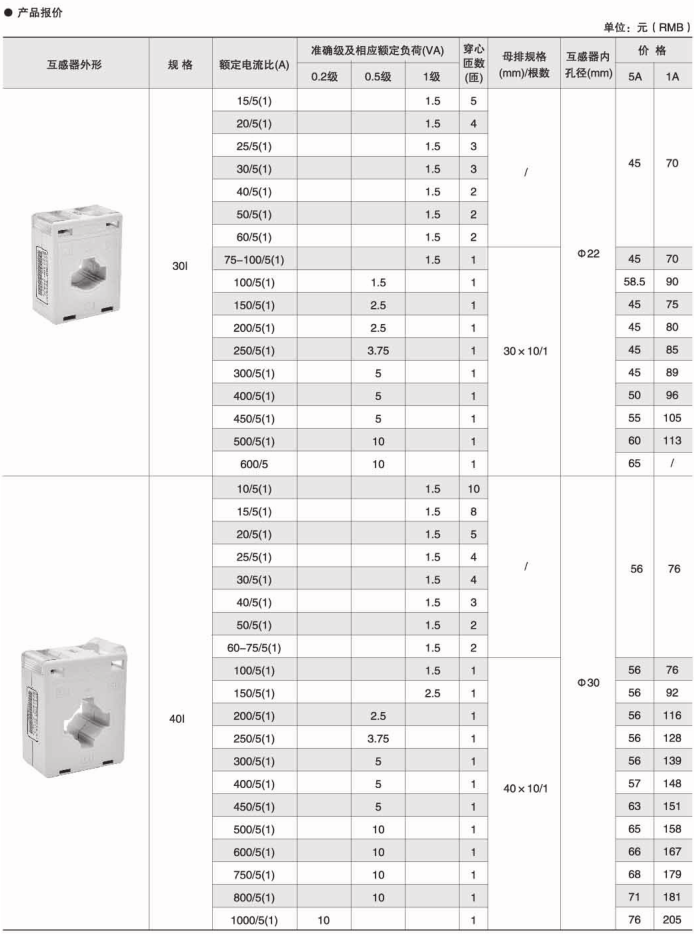 技術要求:額定電流比100A/5A; 準確級1級; 穿心匝數1匝;額定負荷1.5VA;內孔徑φ22mm;穿排規格30mm×10mm 1根。