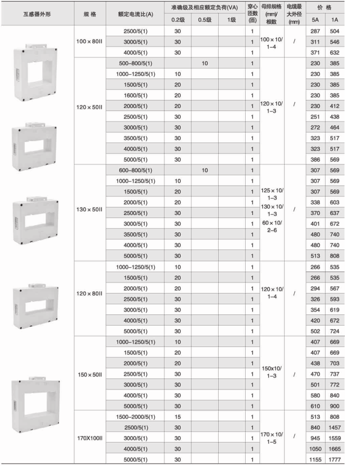 180×50Ⅱ 1200-2000/5(1) 10     1 180×10/1-3