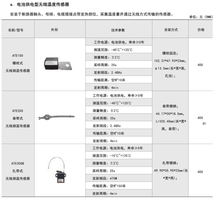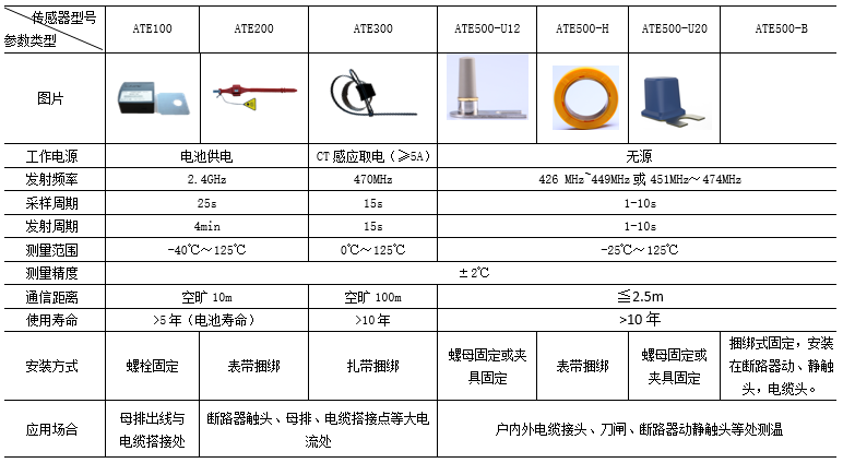 適用于高低壓開關柜內(nèi)電纜接頭、斷路器觸頭、刀閘開關、高壓電纜中間頭、干式變壓器、低壓大電流等設備的溫度監(jiān)測。訂貨范例: