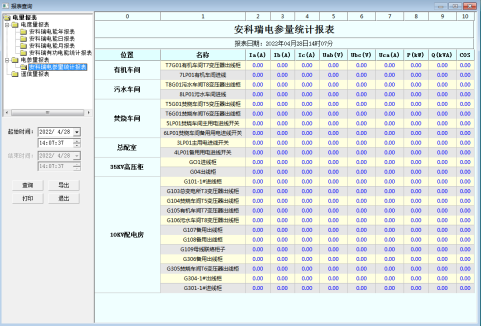 能查詢各回路或設備指定時間的運行參數,報表中顯示電參量信息應包括:各相電流、三相電壓、總功率因數、總有功功率、總無功功率、正向有功電能等。
